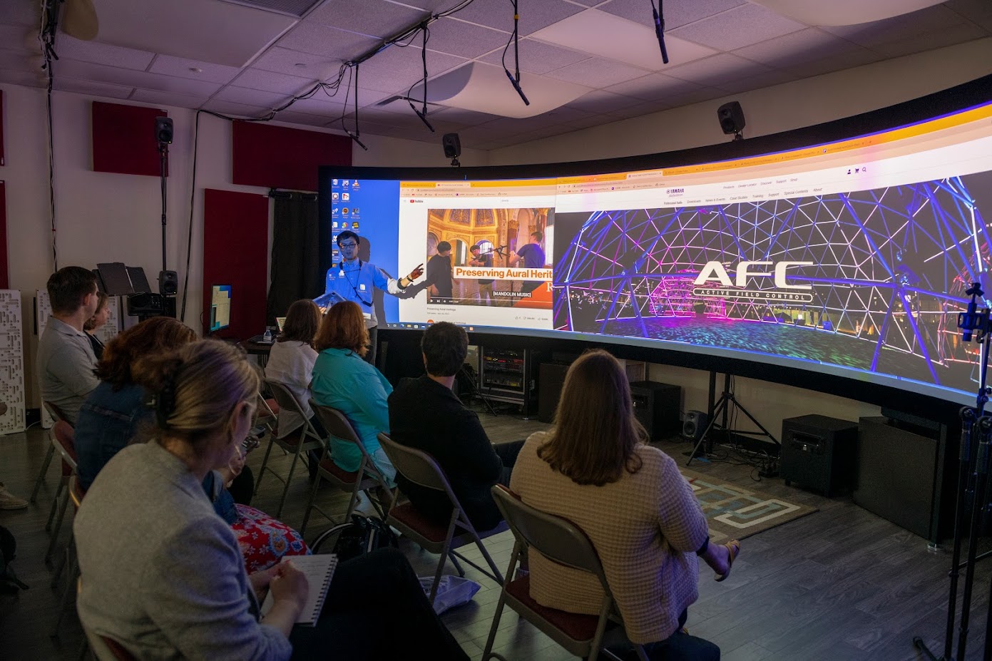 We presented simultaneous visual reproduction of aural heritage data collection scenarios via a 250-degree wraparound screen, with 24 loudspeakers for 3D immersive audio reproduction in the RIT immersive experience laboratory.
